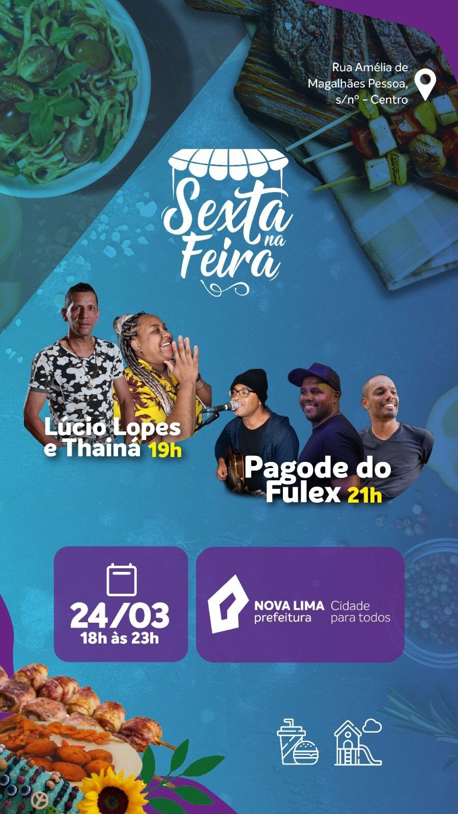- Sexta na Feira (18h às 23h): Lúcio Lopes e Thainá / Pagode do Fulex