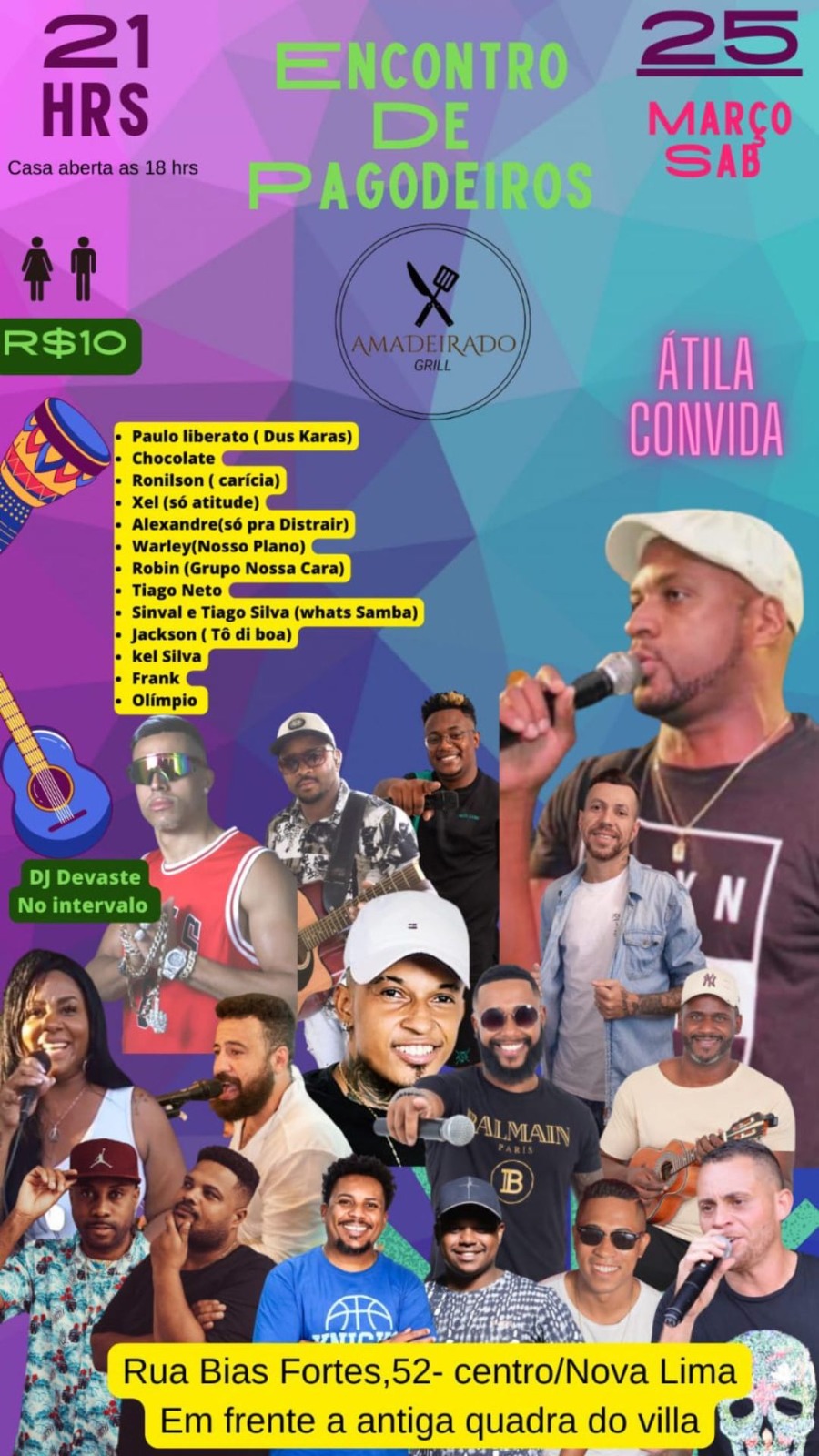 - Encontro de Pagodeiros Amadeirado Grill (21h): Atila Oliveira e vários convidados (Paulo Liberato, Chocolate, Ronilson Carícia, Xexel, Warley Nosso Plano, Frank, Olimpio, Tiago Neto, Jackson Tô Dy Boa, Kel Silva, Robin, Sinval e Tiago Silva, Alexandre So pra distrair)