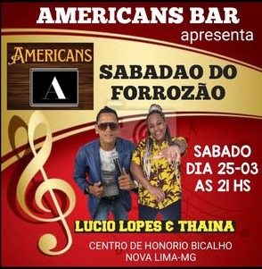 - Sabadão do Forrozão Americanas Bar (21h): Lúcio Lopes e Thaina (Região central de Honório Bicalho)