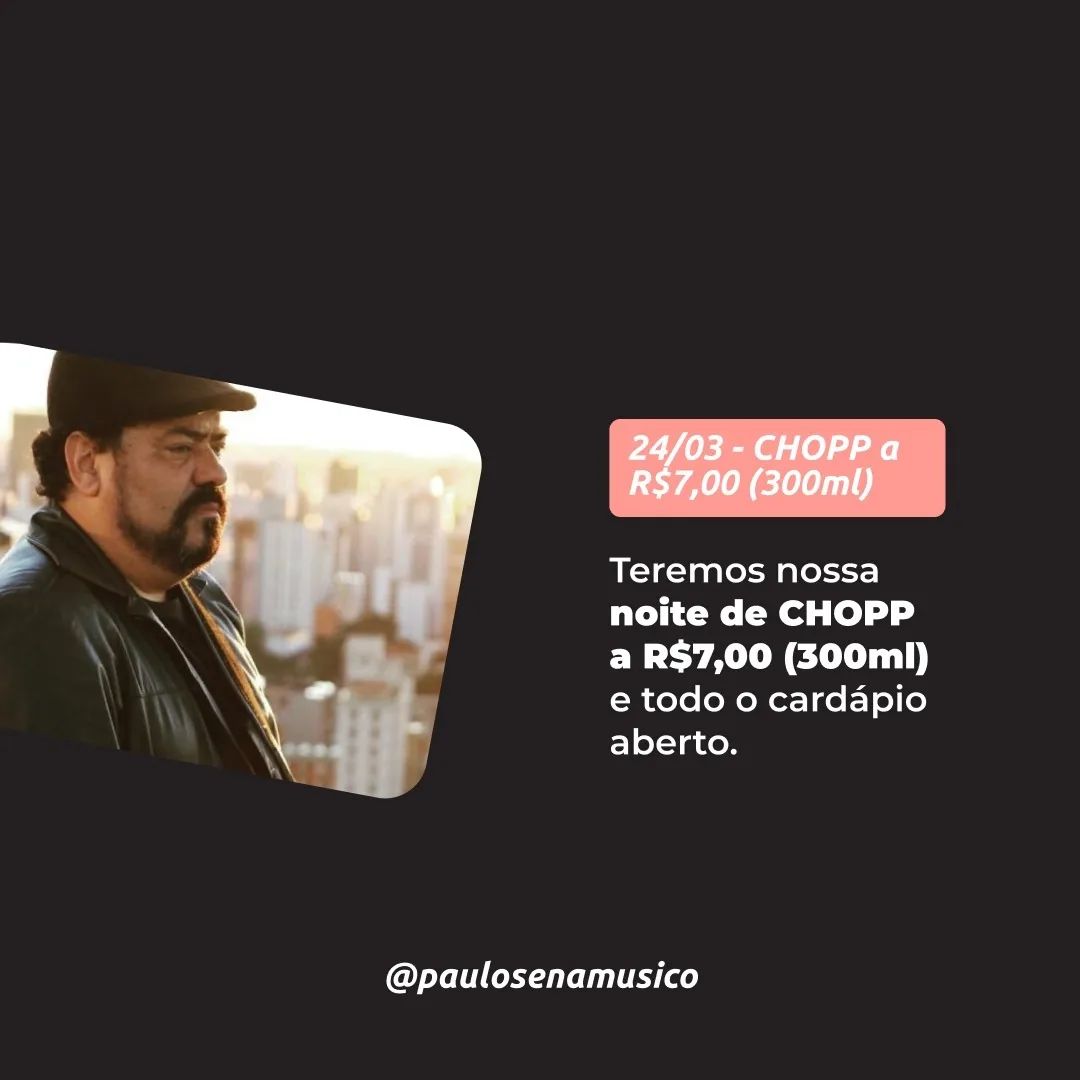 - Do Chop (20h): Tia Gagá Noite Paulo Sena (Rod. Januário Carneiro, 1860 – Ipê)