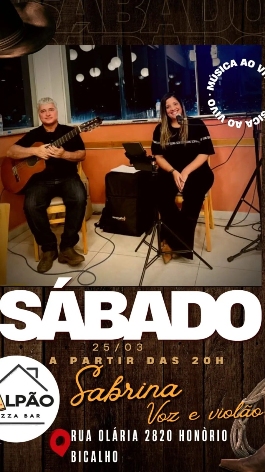 - Galpão Pizza Bar (20h): Sabrina Voz e Violão (Rua Olaria, 2820 – Bicalho)