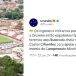 A empolgação da torcida do Cruzeiro para a estreia na temporada 2024 ficou evidente com a rápida venda dos ingressos destinados ao setor visitante do estádio Castor Cifuentes, em Nova Lima Em poucas horas, a torcida celeste esgotou a carga disponível para ...