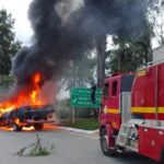 Um caminhão de carga branco pegou fogo na tarde desta quarta-feira (22) na rodovia MG-030, próximo ao trevo do Vila Castela, no bairro Vale do Sereno Segundo informações, o veículo descia sentido Sede quando outros motoristas avistaram uma fumaça preta s ...