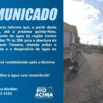 A Secretaria de Obras de Rio Acima informa que, a partir desta terça-feira, 07/03, até a próxima quinta-feira, 09/03, o fornecimento de água da região Centro da cidade será interrompido das 7h às 16h para a abertura de valas na Praça Paulo Teixeira, vi ...