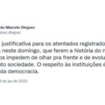 O prefeito de Nova Lima, João Marcelo Dieguez, usou suas redes sociais para comentar os protestos populares deste domingo (8) em Brasília, do Distrito Federal. O chefe do executivo municipal disse que “o respeito às instituições é regra básica da demo ...