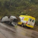Na tarde deste domingo (6), um carro capotou na BR-040, na altura do trevo de São Sebastião das Águas Claras, também conhecido como Macacos, em Nova Lima. O trânsito foi parcialmente interditado, no sentido Belo Horizonte. De acordo com a concessionária