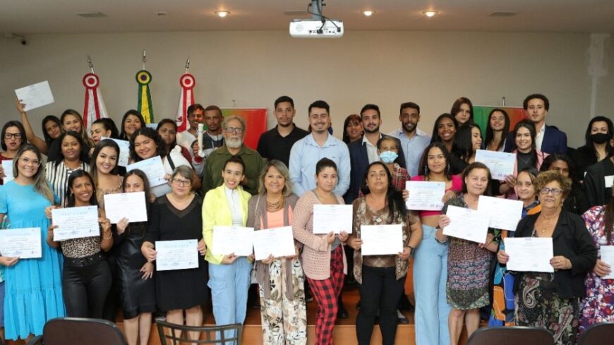 O Carreiras certificou no dia18 deste mês, mais 81 participantes de sete cursos da modalidade Profissões: costureira de lingerie, confeiteiro, bombeiro hidráulico, operador de empilhadeira, manicure, pacote office e gestão de mídias sociais. As capacitações, de duração entre 30 e 60 dias em média, foram realizadas na Sede, Água Limpa, Jardim Canadá e Honório Bicalho. Outros cursos seguem em andamento, com previsão de término ainda para esse mês e formatura demais participantes.